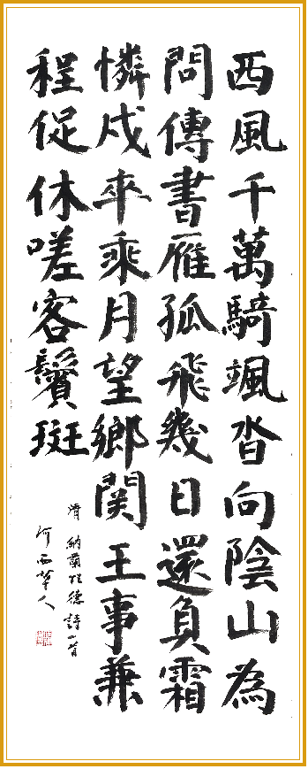 这首诗是纳兰性德为数不多的描写实事的文字。通过这首诗可以看出纳兰性德不仅仅是诗词成绩卓越,在政治活动中也是一名合格的军事官员。